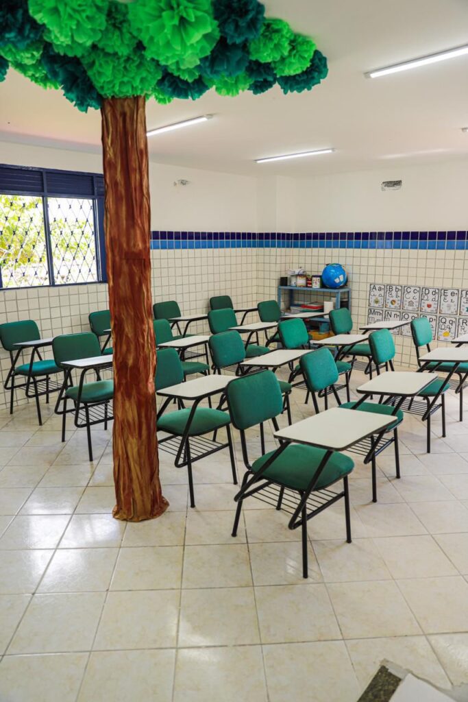 Educação de qualidade- A obra da reforma da Escola Altimar Pimentel contemplou a recuperação estrutural e estética de todos os ambientes, modernização das redes elétrica e hidrossanitária, revitalização de salas de aula, pátios e áreas externas, além da implantação de melhorias em acessibilidade, segurança e conforto.