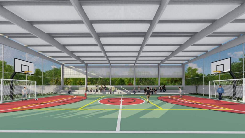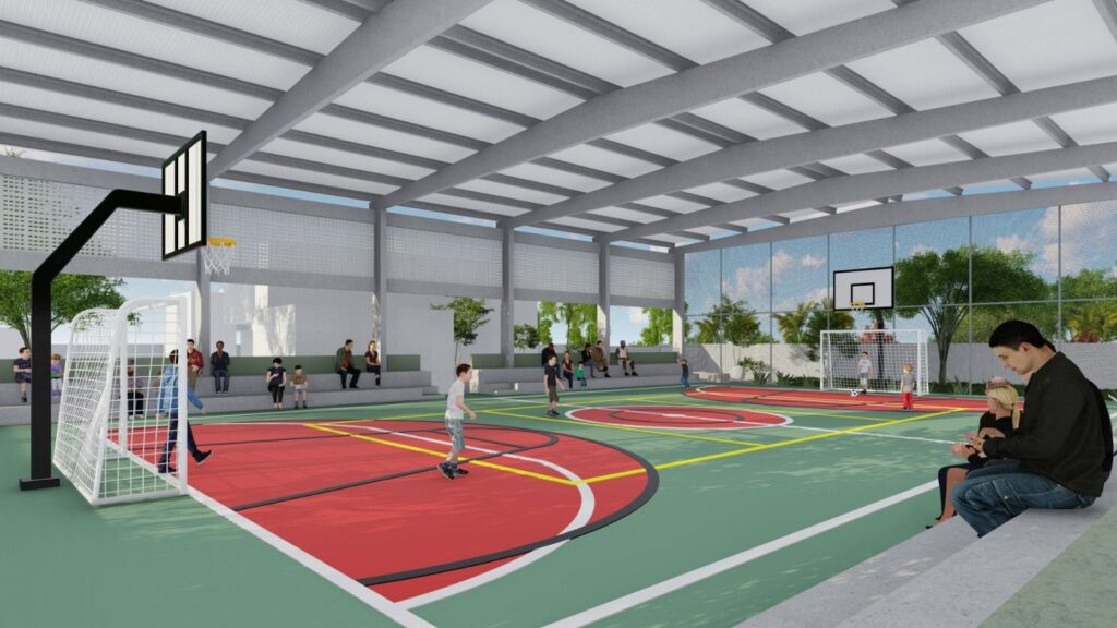 A escola conta agora com quatro blocos estruturados em salas de aula, informática, leitura, multiuso, professores, recepção, cozinha, refeitório e banheiros acessíveis.