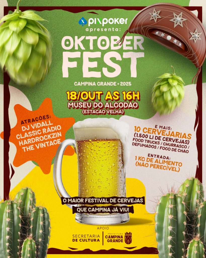 Inspirado nas tradicionais festas alemãs, mas com uma forte identidade regional, o Oktoberfest Campina Grande está confirmado e promete ser um dos grandes destaques do calendário de eventos da cidade. O evento acontecerá no dia 18 de outubro de 2025 e acontecerá no Museu do Algodão, localizado no coração da cidade.